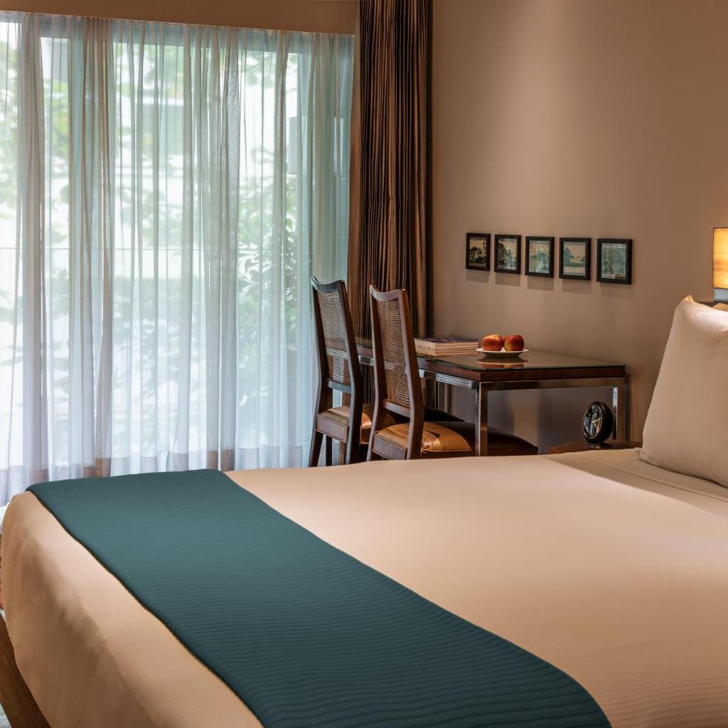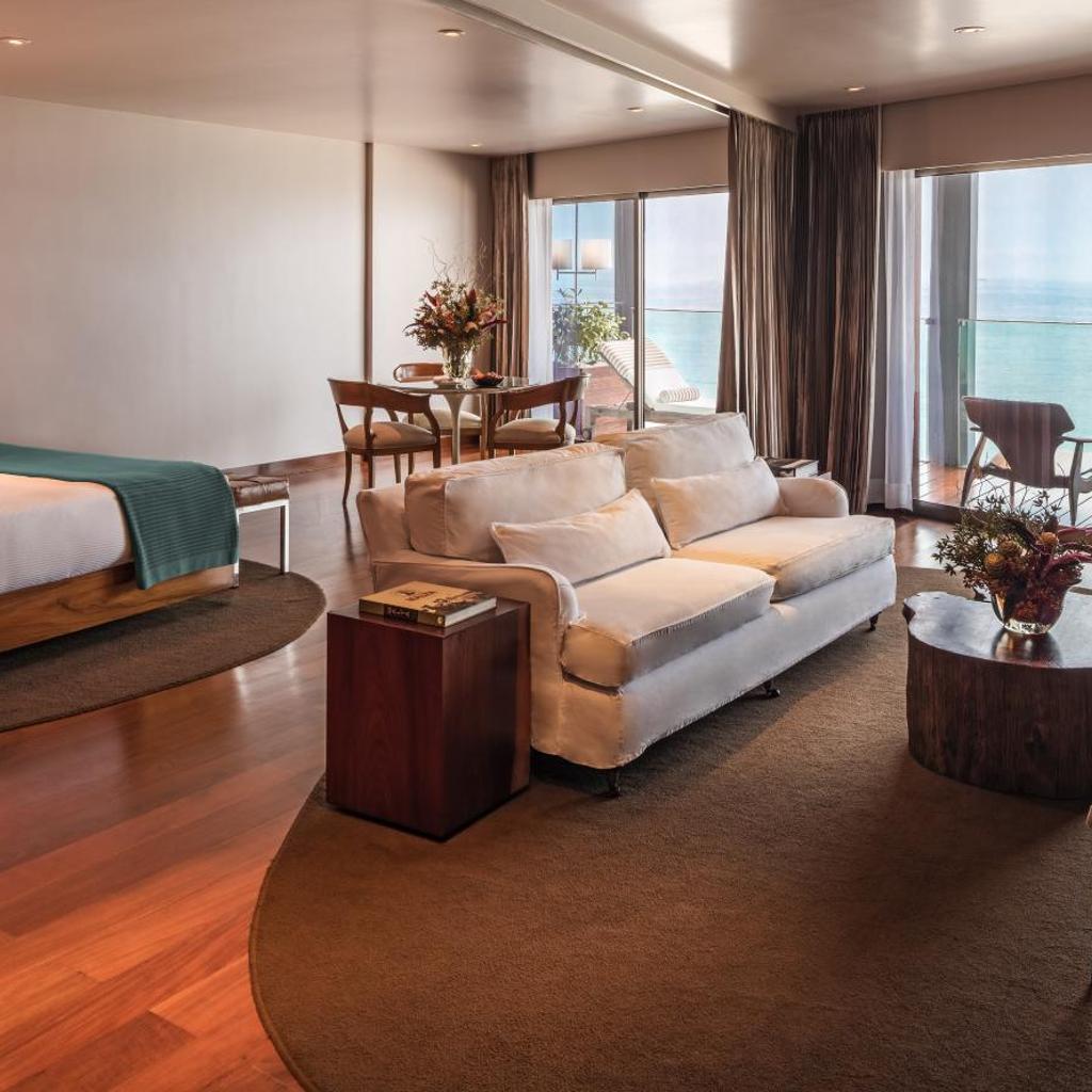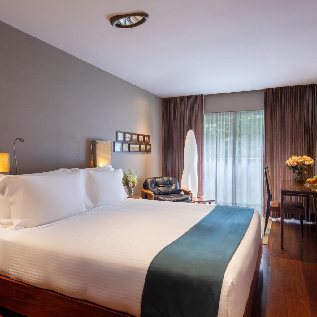 - Quartos espaçosos e bem equipados: As acomodações são luxuosas, com varanda, TV de tela plana, ar-condicionado e banheiros privativos com banheira ou chuveiro.